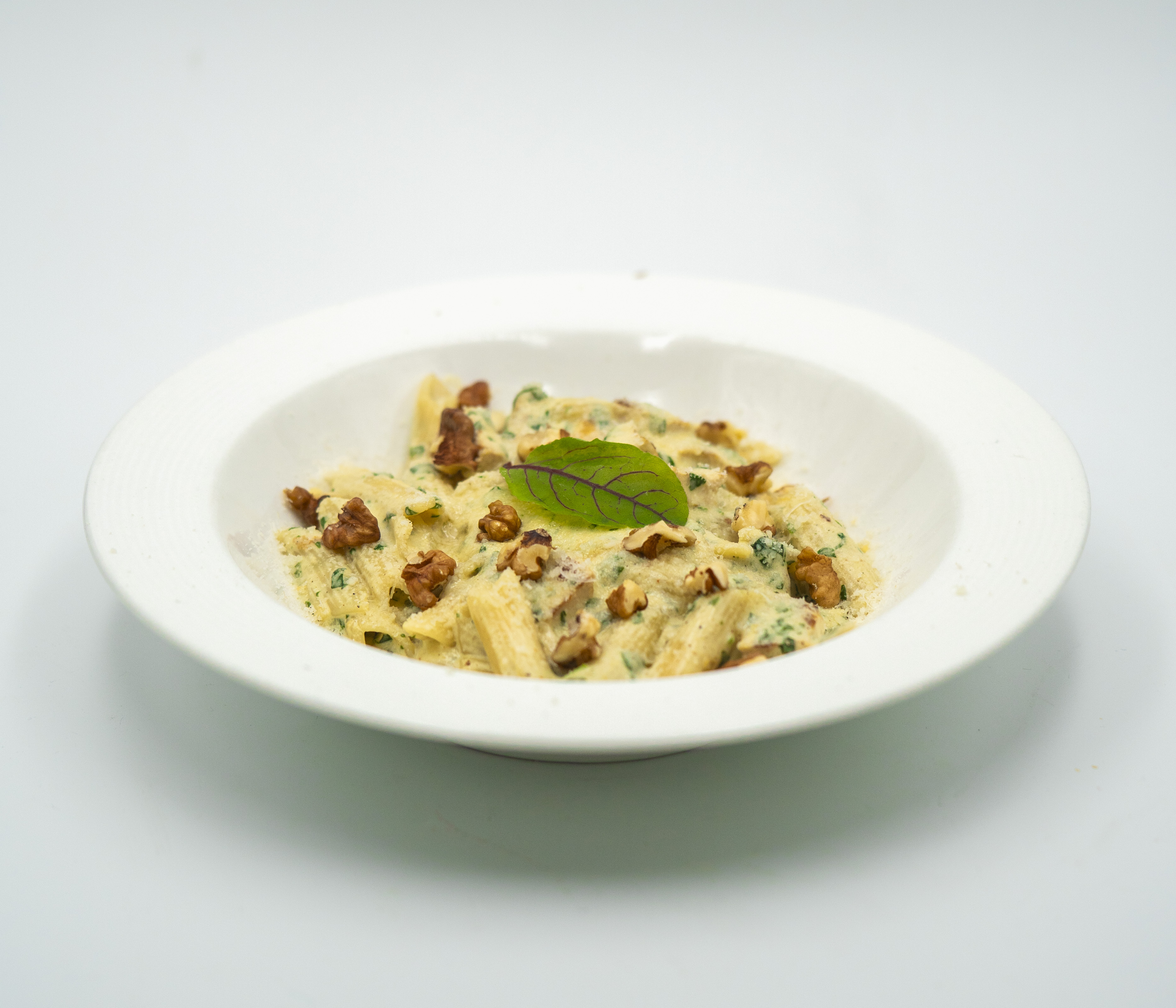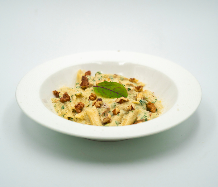 پنه . سس ریحان . شنیتسل مرغ گریل شده . پسته خردشده و پنیر پارمسان